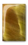A shiny, yellow-gold that shifts to a bronzey brown-gold. This cat eye is pure gold!