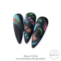 Apply an even layer (do not cure), and drop or paint in colours - and in a few seconds you'll see Bloom work it's magic! UV/LED Cure for 60 seconds.