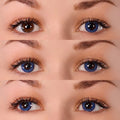 On dark natural eyes, these colored contacts have more of a frosty aspect, considerably lightening your gaze.