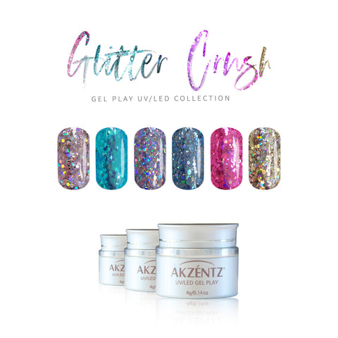 Create massive impact with the brand new Gel Play Glitter Crush Collection - Only from Akzentz.