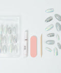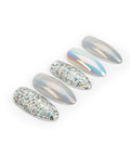 Holo, beautiful! Equal parts daring and demure, this nail set mixes chunky and micro-glitter holographics with pretty pearlescent press-ons.