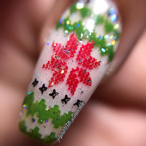 The Christmas Sweater nail stamping plate features nail art designs of the infamous Christmas sweater …who doesn’t love an ugly Christmas sweater? This nail stamping plate allows the user to create multi-layered and multi-colored nail art designs with ease. Create your own sweater or customize your mani with nail designs that co-ordinate!