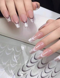 2Sheets French Gradient Line Nail Art Stickers 3D Self-Adhesive White+Black...