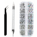 12 Grids 6 Sizes Clear Rhinestones In 6 Sizes Flatback Shiny Crystal Ab Nail Art Gems With Tweezer And Rhinestone Picker Dotting Pen Nail Art Tools For Nails, Face Eye Makeup, Craft Nail Supplies Nails Nail Charms